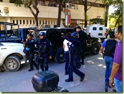A los pocos minutos arribaron al estacionamiento del inmueble municipal agentes de la Policía Ministerial del estado y de Fuerza Estatal, cuyo número fue creciendo y sus movimientos de cerco a la llamada “Casa del pueblo” provocaron expectación, temor y curiosidad en los presentes, cuya cantidad (de “mirones”, incluidos algunos reporteros) también se fue acrecentando conforme se le daba forma al operativo policiaco que para entonces ya tenía rodeado el Palacio.